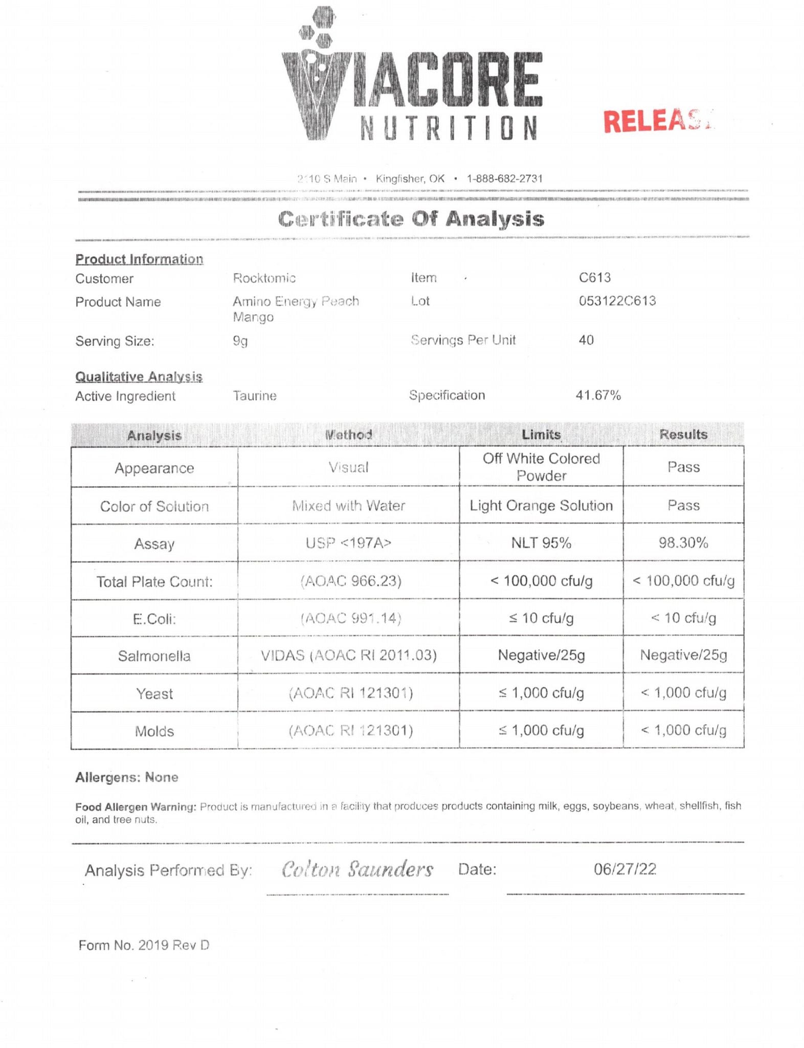 Energized Aminos is formulated to support to improve exercise performance, increase muscle protein synthesis, prevent muscle tissue break down, increase energy, increase cognition, enhance your pump, increase focus, and recovery from exercise. Our product is synthesized utilizing the latest scientific research and formulated with high-quality ingredients. Our formula is third-party independently tested for heavy metals, impurities, made in the USA, GMP certified, and produced in an FDA registered facility. 1% of the supplements on the market can match our world-class standards. |