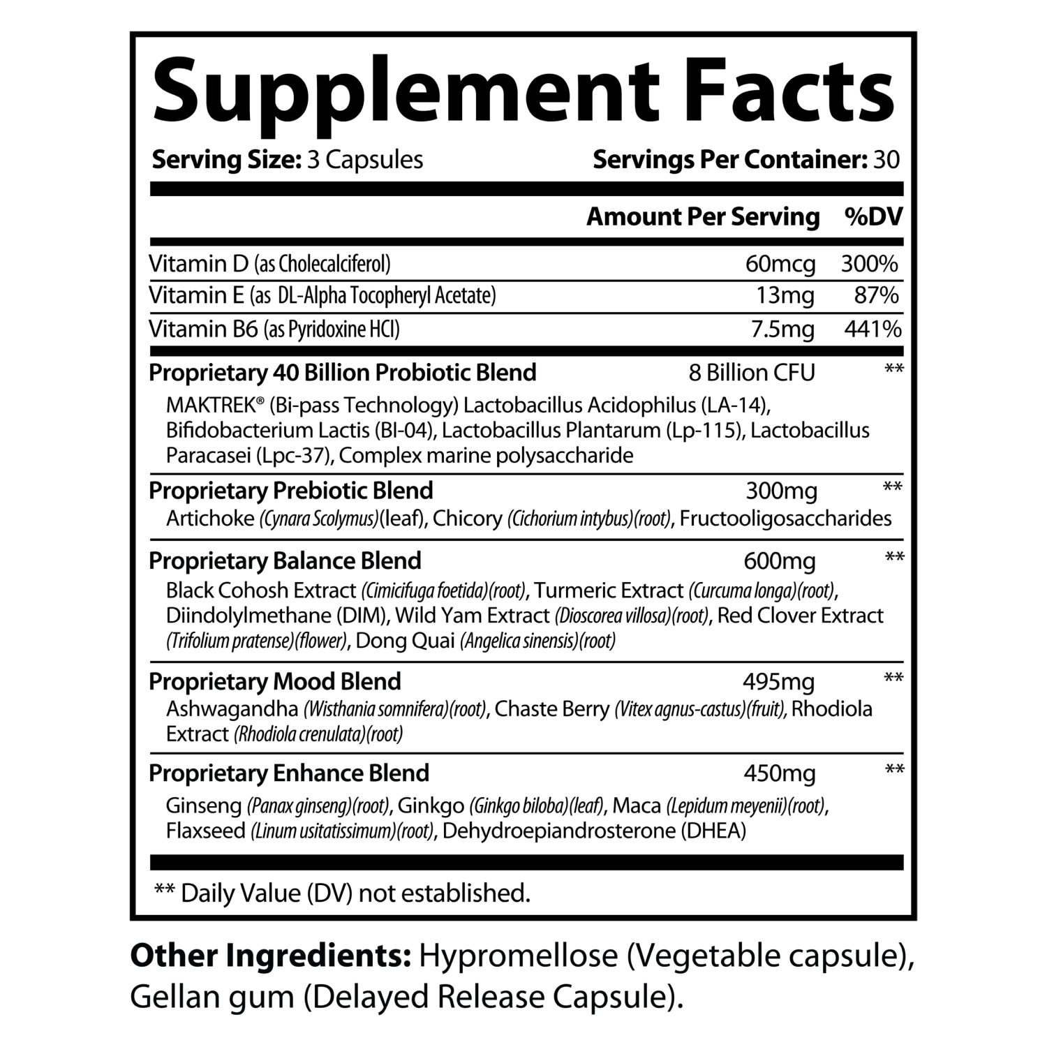 Enhance Blend – Powerhouses like Ginseng, Maca, Ginkgo, and Flaxseed join forces with DHEA.